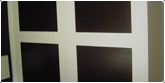Puertas correderas, su diseño destaca por el equilibrio y simetría en sus formas, con gruesos marcos de madera en color blanco mate y los plafones en Wengué. |